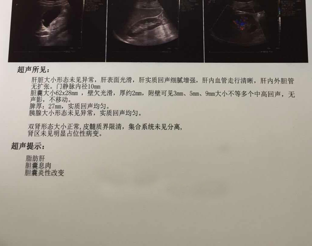 18年某天因工作需要吃完饭后,胃突然疼的喘不过气,还严重呕吐,突然感觉腹部剧烈的疼痛,直不起腰来,同事把我送到急诊,做个了B超,说是有胆囊息肉! 医生说好在息肉较小,吊了半天水,感觉好些,让出院了,开了些消炎利胆片,阿莫西林之类的,让我吃完去复查,并叮嘱我 要注意饮食。